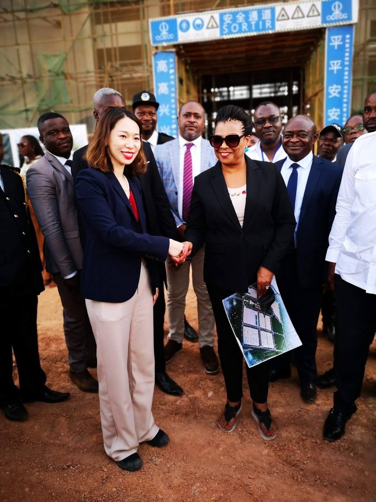 当地时间2022年5月12日,刚果(金)海关总署关长KAWANDA WALWOM Jeanne Blandine女士率考察团莅临嘉友国际刚果金嘉金公司萨卡尼亚口岸考察指导工作。嘉金公司总经理吴舒洁女士向海关总署考察团详细介绍了口岸的基础设施建设规划、功能区划分和现代化的监管措施等口岸实施计划。